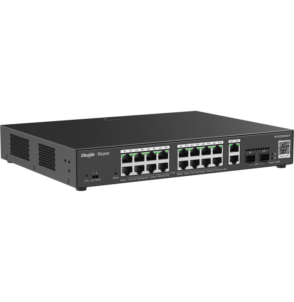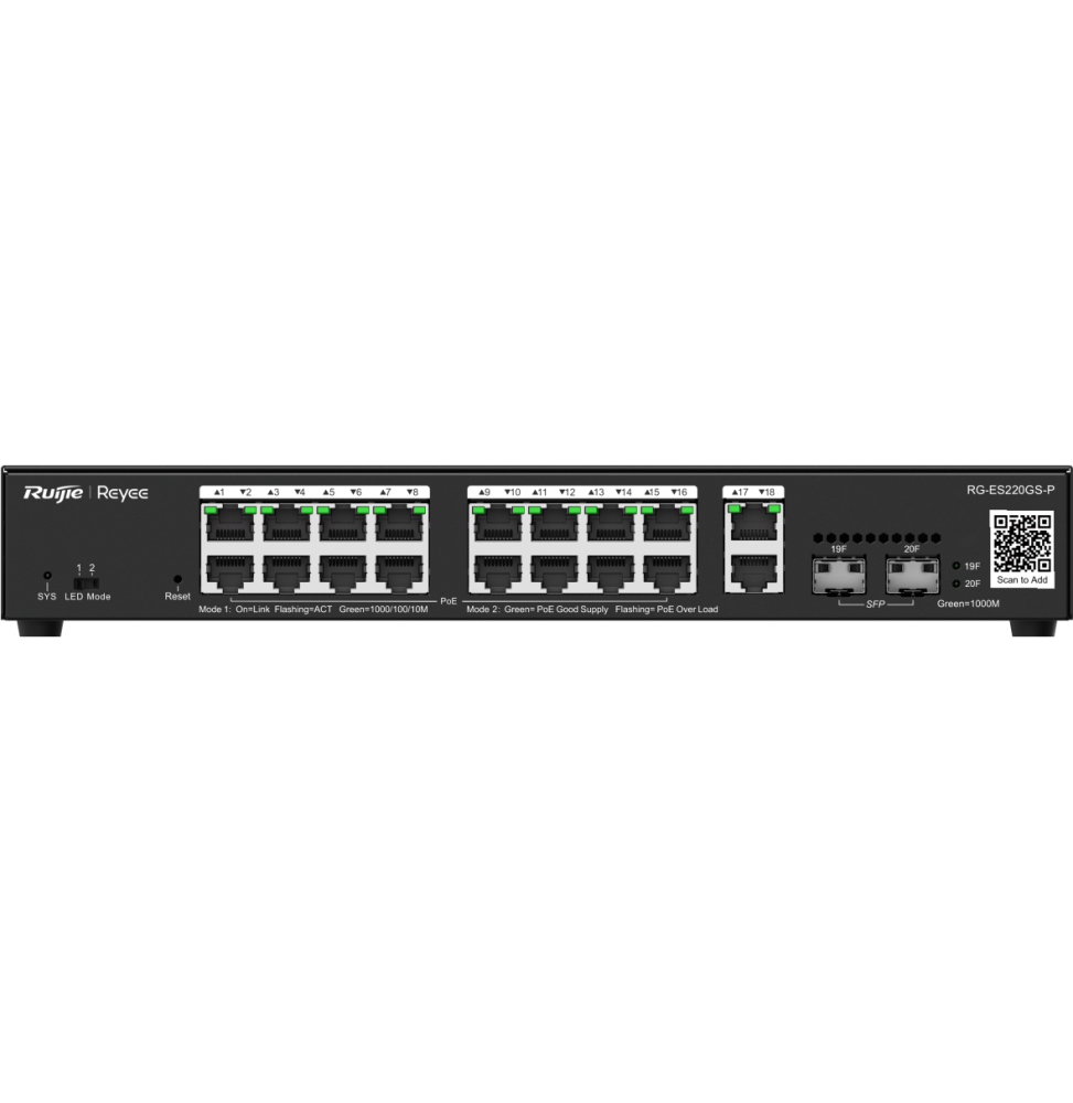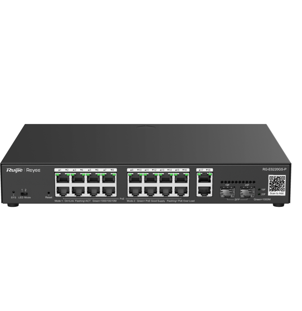 - 18 x 1 ports 10/100/1000Base-T, 16 x ports PoE+