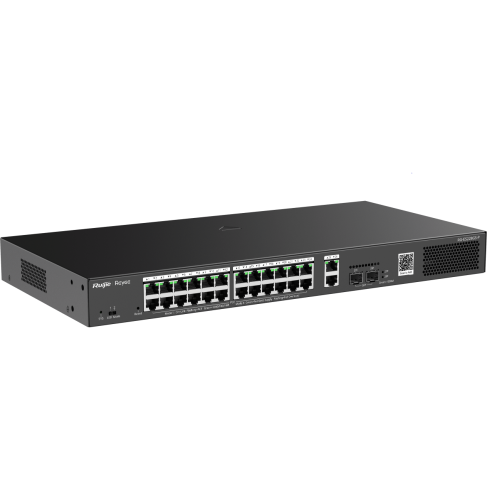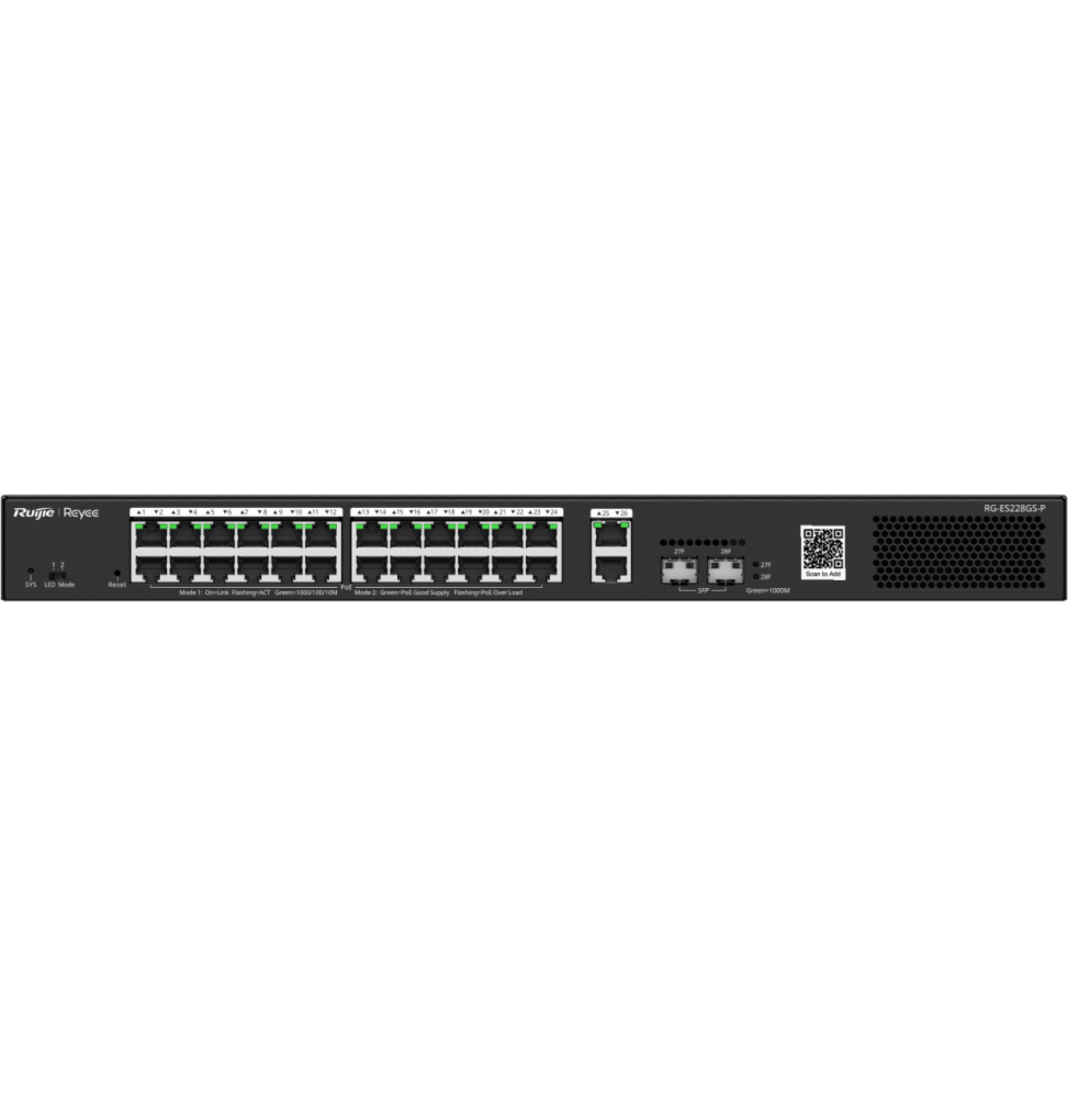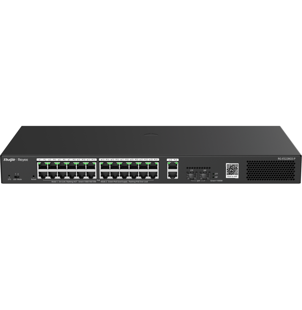 - 26 x 10/100/1000Base-T, 24 x PoE+ ports