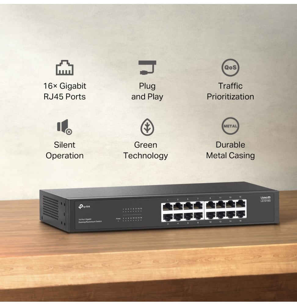 Switch de bureau TP Link LS1016G non administrable 16 ports Gigabit