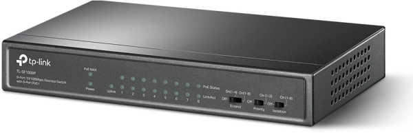 Switch de bureau TL-SF1009P 9 ports 10/100 Mbps avec PoE+ 8 ports. Avec 8 ports PoE+ alimentant les câbles et transférant les données, ce switch plug and play offre une portée de transmission jusqu’à 250 m en mode étendu. Les modes priorité et isolation garantissent des performances et une sécurité optimales. Avec un budget PoE total de 65 W, ce switch professionnel convient parfaitement à la surveillance IP, aux conférences et plus encore. Boîtier en métal robuste pour une durabilité accrue.