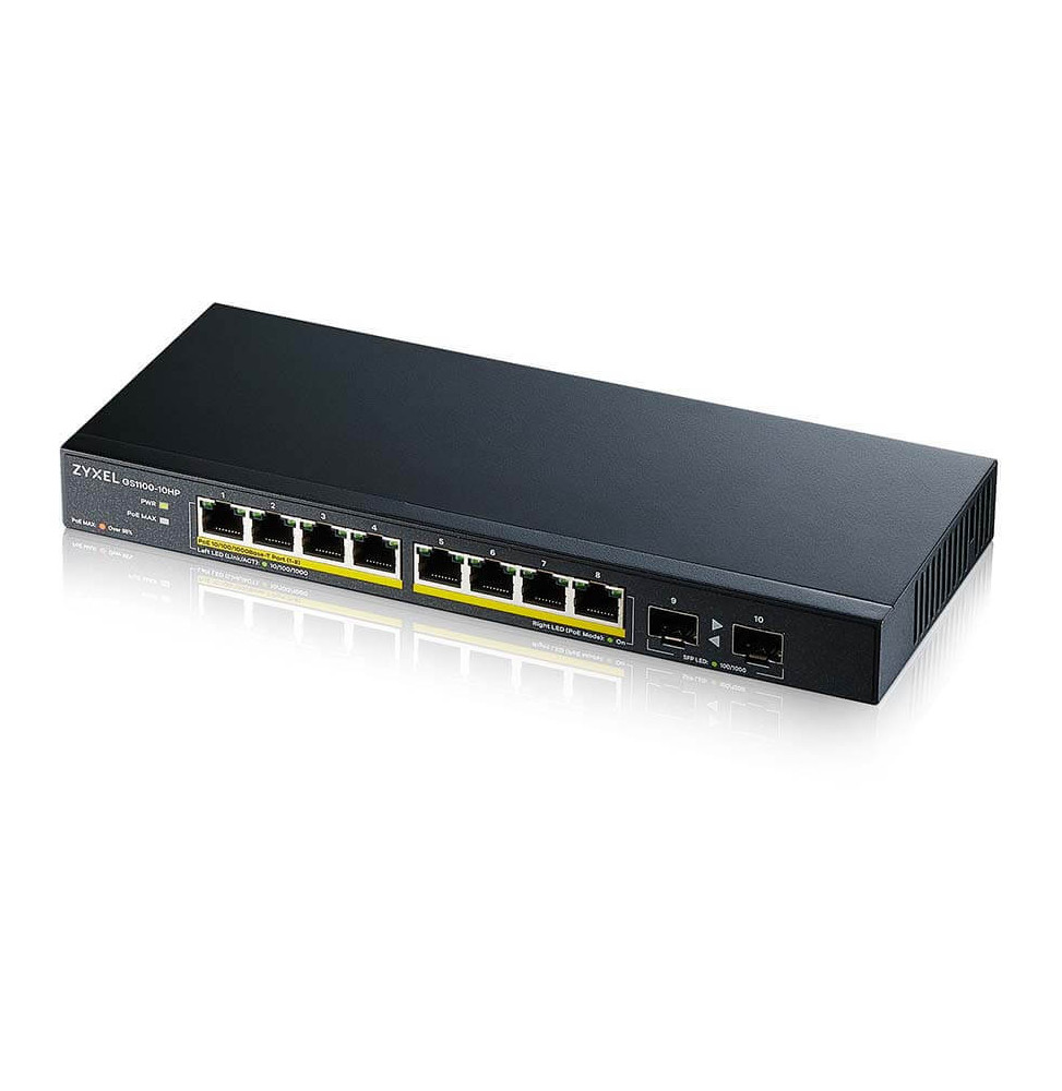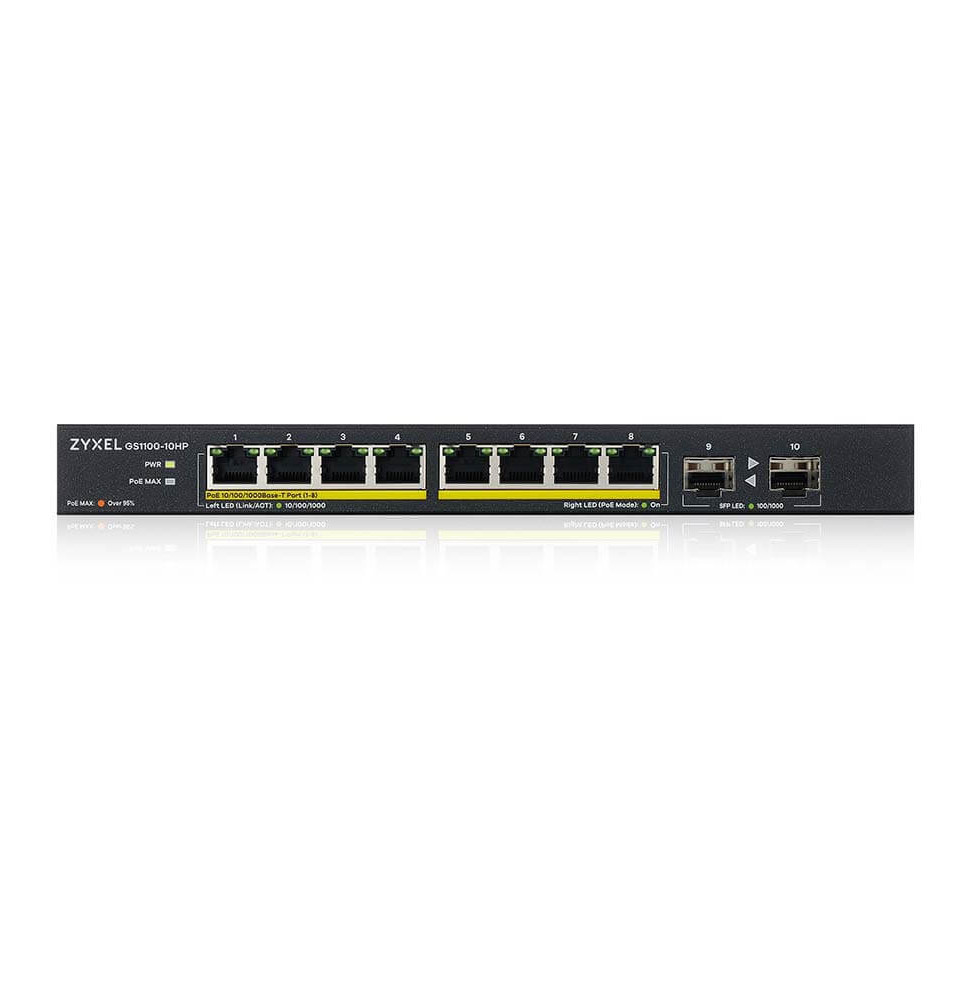 - • 8 x GbE PoE RJ-45 ports • 2 x GbE SFP ports • PoE power budget: 130 W