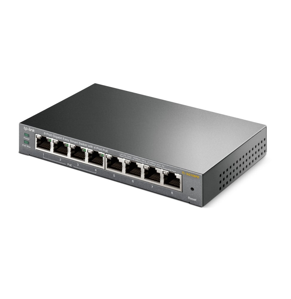Accueil Réseau Switch TP-Link TL-SG108PE Géré L2 Gigabit Ethernet (10/100/1000) Connexion Ethernet, supportant l'alimentation via ce port (PoE) Noir