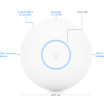 1 Découvrez l’Access Point U6 Pro, la solution idéale pour des bureaux spacieux. Avec sa technologie WiFi 6 et ses 6 flux spatiaux, il offre une couverture de 140 m² et peut gérer plus de 350 appareils connectés. Alimenté par PoE, il s’installe facilement au plafond 1 ou au mur. Profitez d’une connectivité rapide et stable pour tous vos besoins professionnels, tout en bénéficiant de fonctionnalités avancées comme le meshing sans fil et la gestion des utilisateurs. Transformez votre expérience réseau avec l’U6 Pro !
