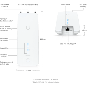 Optimisez vos connexions sans fil avec la RocketPRISM 5AC Gen2, une station de base 5 GHz hautes performances idéale pour les liaisons Point-à-Multipoint (PtMP) et Point-à-Point (PtP). Capable d’un débit supérieur à 500 Mbps, elle garantit une transmission rapide 1 et fiable. Son boîtier en aluminium moulé assure une durabilité exceptionnelle, même en conditions extrêmes. Grâce à la technologie airMAX ac, à la gestion avancée QoS et aux outils intégrés (airView, speed test, alignement d’antenne), elle offre une expérience réseau maîtrisée. Alimentée en PoE et dotée d’une interface gigabit, elle se distingue par sa flexibilité, sa sécurité WPA2 AES, et ses performances optimisées.