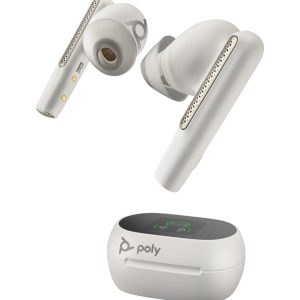 Plongez dans un monde rempli de sons et sans bruits de fond avec les écouteurs sans fil POLY Écouteurs sable blanc Voyager Free 60 UC. Dotés de trois microphones par écouteur, ils assurent une clarté vocale exceptionnelle dans toutes les situations. Légers et confortables pour une utilisation prolongée, ces écouteurs offrent également une technologie avancée d'effet local pour 1 un contrôle optimal du volume de votre voix. Restez connecté et productif toute la journée grâce à ces écouteurs professionnels polyvalents.